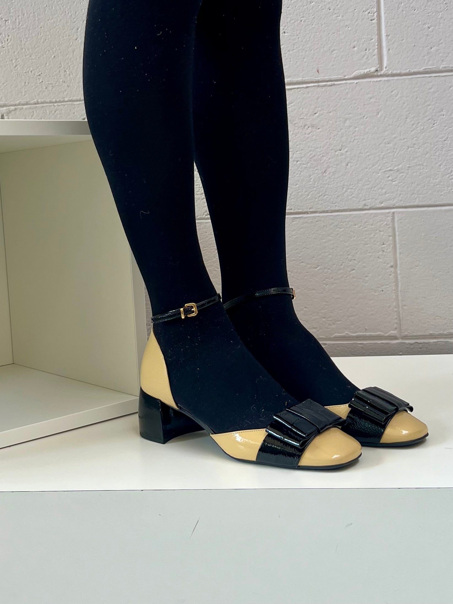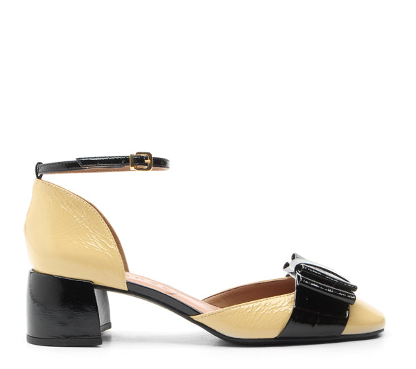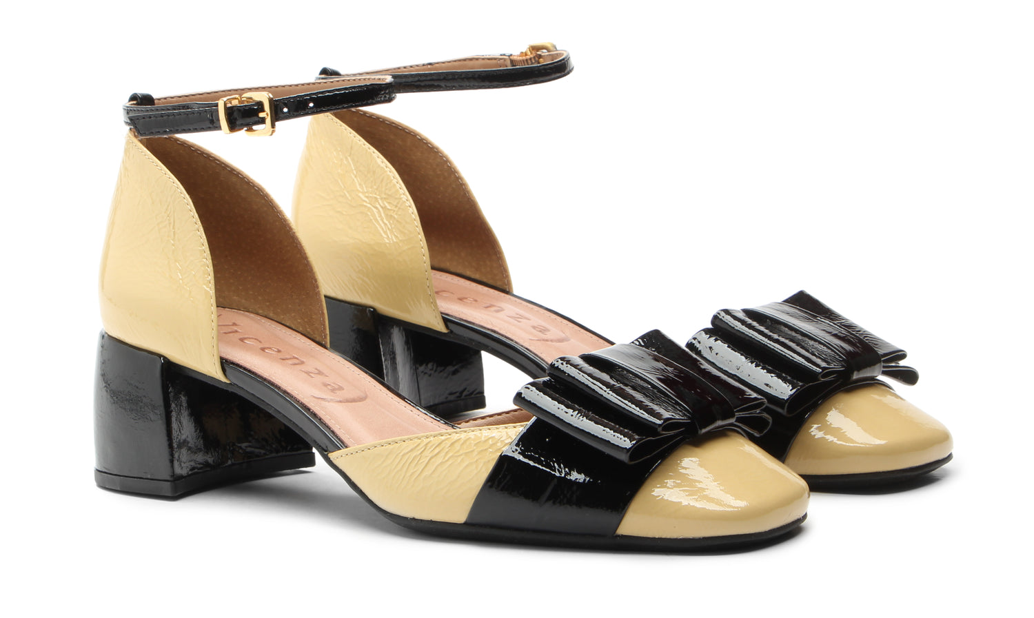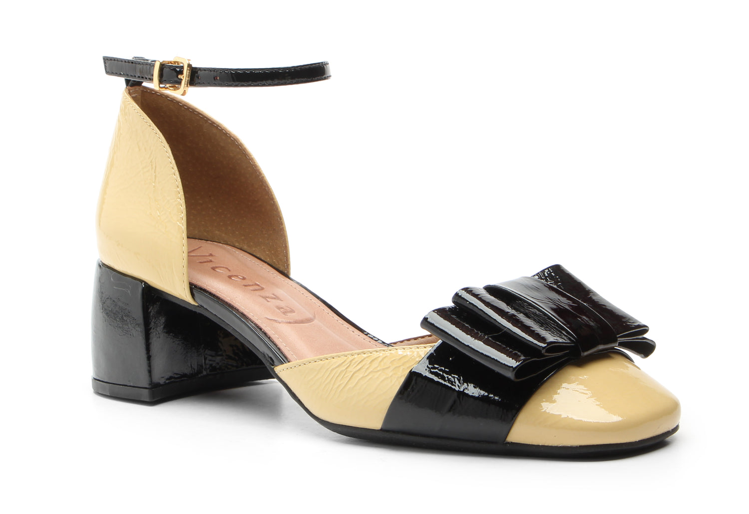 Leather upper. Almond toe. Leather covered heel (height 55 mm). Rubber sole.