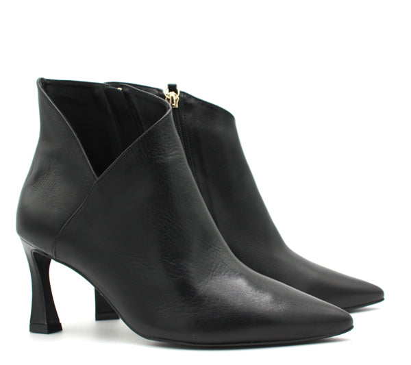 Leather upper. Pointed toe. Covered heel (height 75 mm). Synthetic sole.