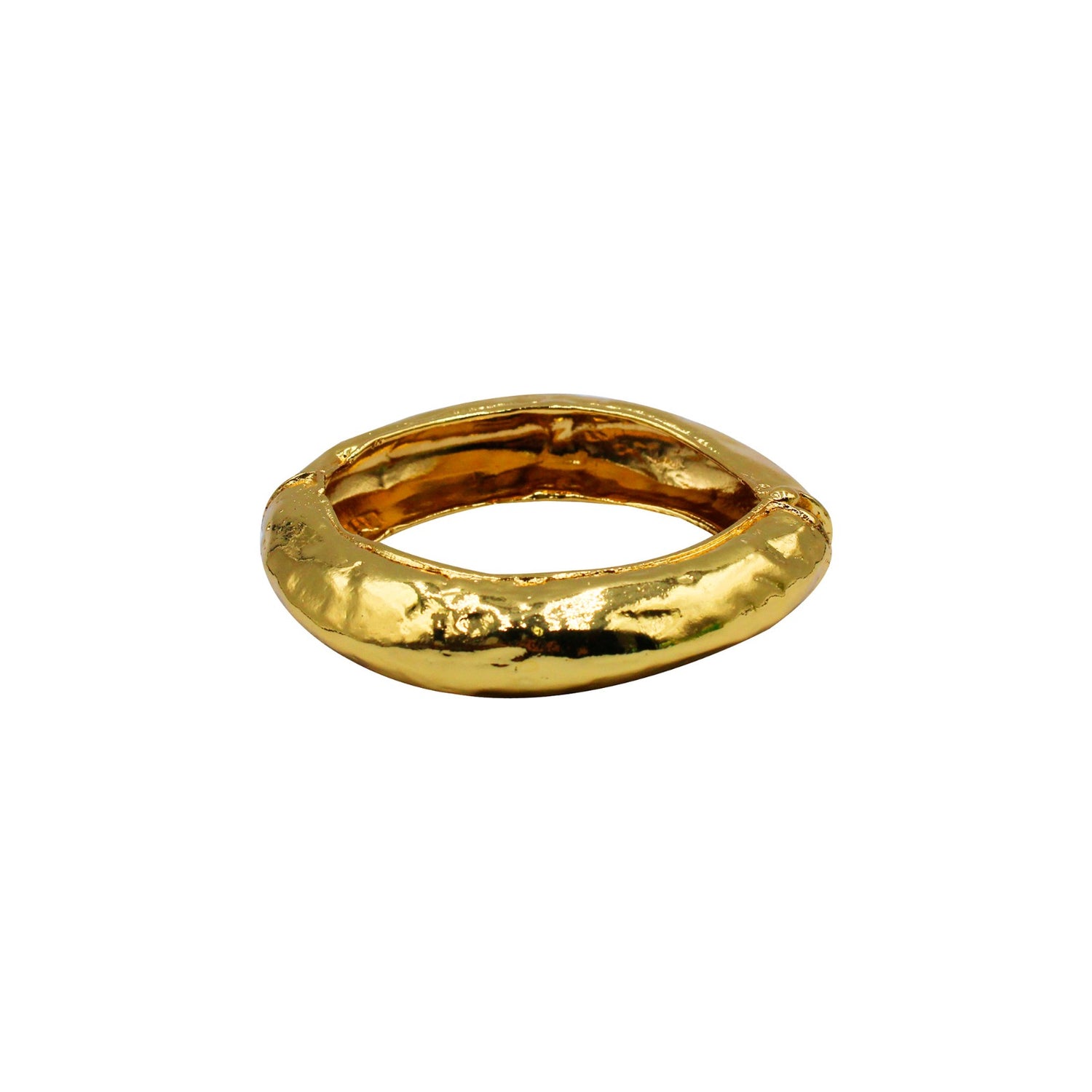 Bracciale in metallo martellato a mano con finitura con bagno oro vintage che conferisce un effetto raffinato e allo stesso tempo antico. Le imperfezioni della martellatura conferiscono charme e autenticità al bracciale.